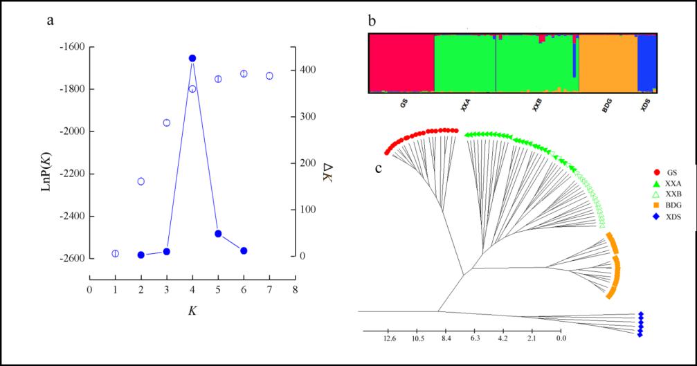 进展二:研究物种的遗传变异和种群连通性对保护濒危物种具有重要意义。利用16对SSR标记对4个巴东木莲种群进行研究,结果显示该物种具有低的遗传变异(HE = 0.228-0.364)和高的遗传分化(FST = 34.0%,G”ST = 53.4%),这主要是由于其种群规模小、地理隔离导致的遗传瓶颈、漂变、近交和基因流受限所致。巴东木莲有限的花粉和种子传播能力以及野外分布地区复杂的地理条件,导致该物种的历史基因流非常低(Nmhis = 0.762);同时发现,种群间的当代基因流(Nmcon = 0.474)小于其历史基因流,这表明最近几十年该物种的生境破碎化进一步阻碍了种群间的基因交流,种群连通性进一步遭到破坏。为了保持该物种的进化潜力,缓解濒危状况,建议在原地和迁地保护计划的基础上,种群内进行人工异株之间授粉,以减小近交并增加结实率。相关研究结果以“Decreasing genetic connectivity in the endangered tree Magnolia patungensis in fragmented forests”为题发表在Global Ecology and Conservation上。论文链接:https://doi.org/10.1016/j.gecco.2020.e01227。