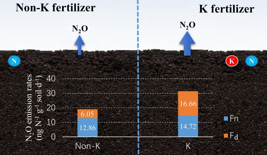 合理的养分管理可实现土壤N2O减排。前人研究显示,钾素与氮素在土壤、根际和植物体内均具有显著交互作用,增施钾肥可以通过植物、凋落物、微生物数量和种类影响,进而调控N2O排放。然而,关于钾肥对N2O排放的报道较少,数据零星,尚没有充足的直接证据证实钾肥对土壤N2O排放所起的作用。