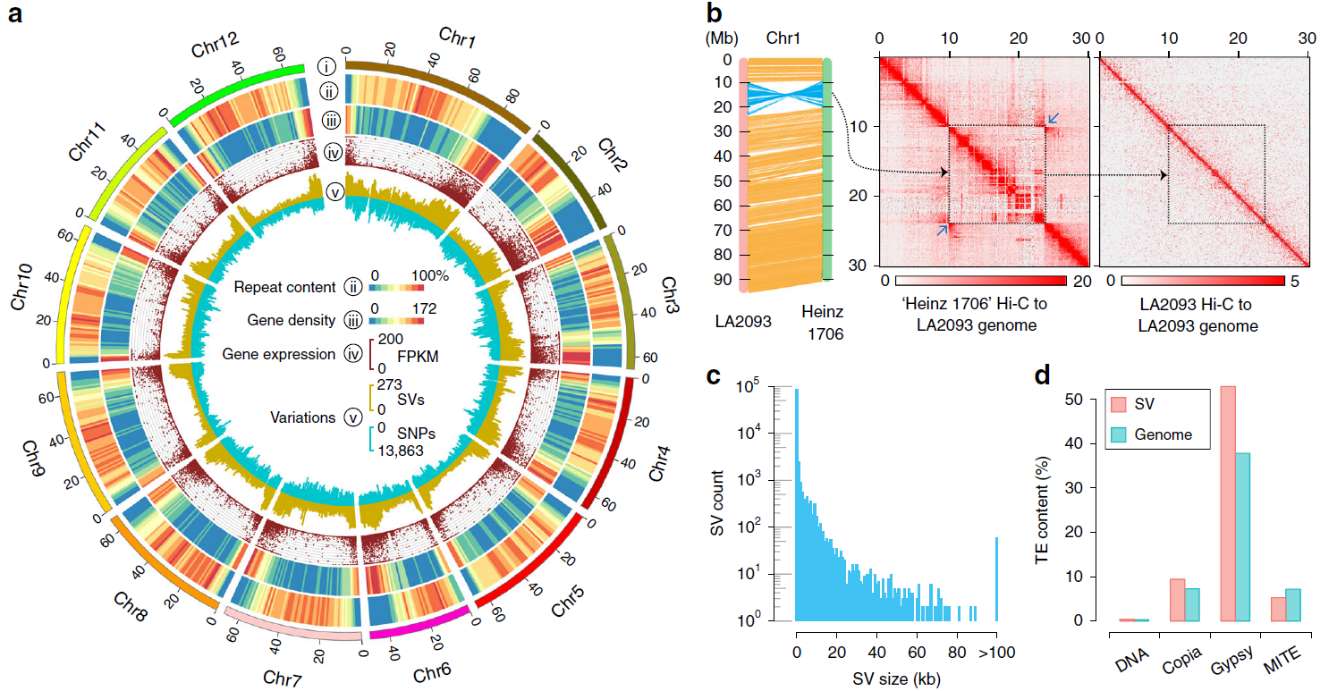 图1 醋栗番茄LA2093基因组及结构变异