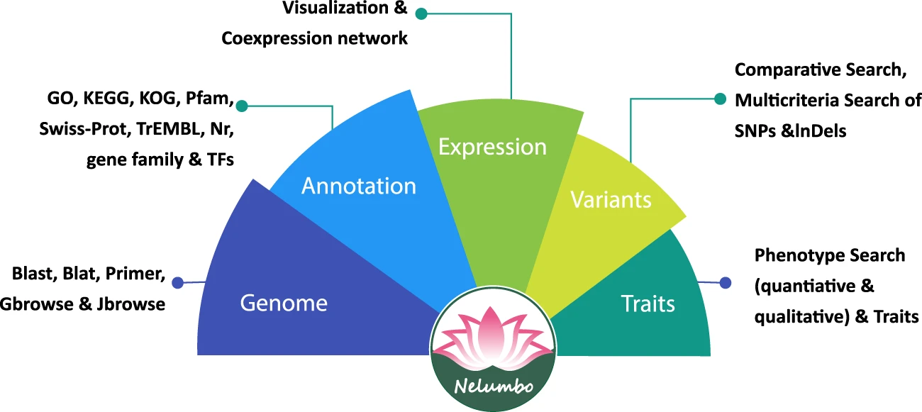 图1. 莲基因组遗传变异与表达数据库的布局构架