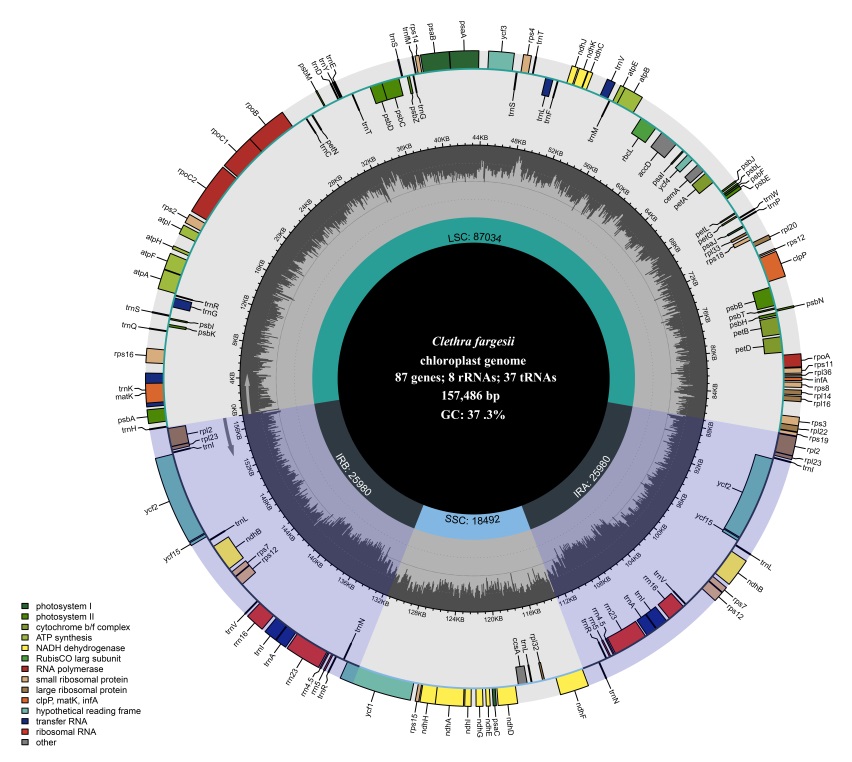 图1. 城口桤叶树(Clethra fargesii)的叶绿体基因组图谱
