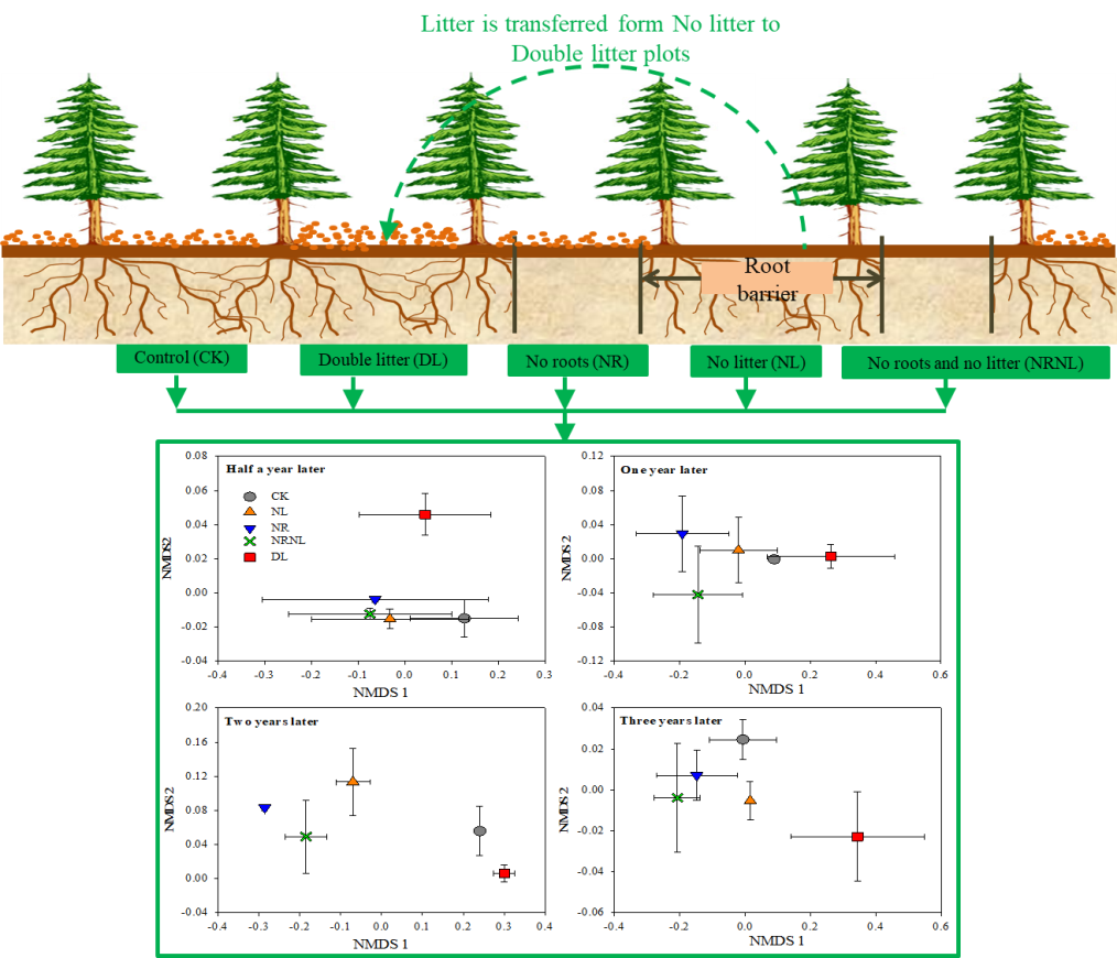 相关研究成果以“Case study on a coniferous plantation site about inter-annual shifts in microbial communities under short-term detritus input manipulations”为题发表在环境科学SCI期刊Ecological Indicators。