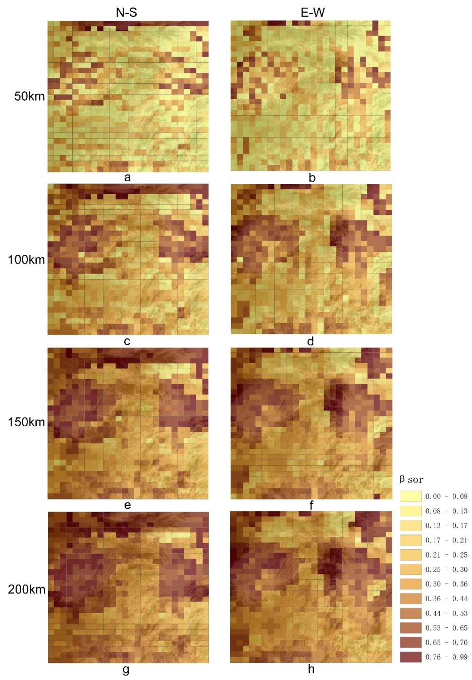 1 华中地区木本植物β多样性在不同尺度、不同方向上的空间格局