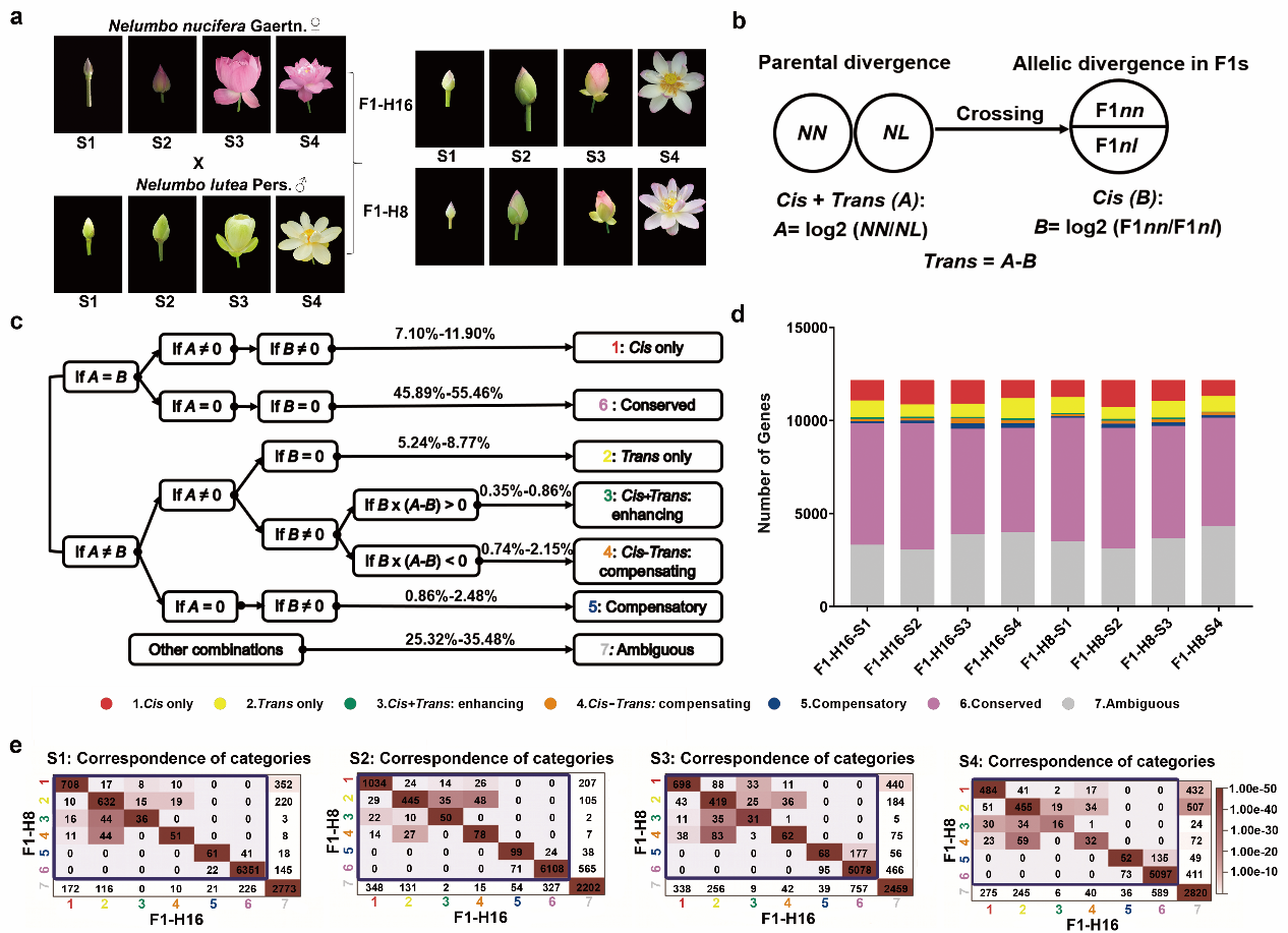 武汉植物园揭示莲属植物种间花色分化的基因顺反式调控变异规律
