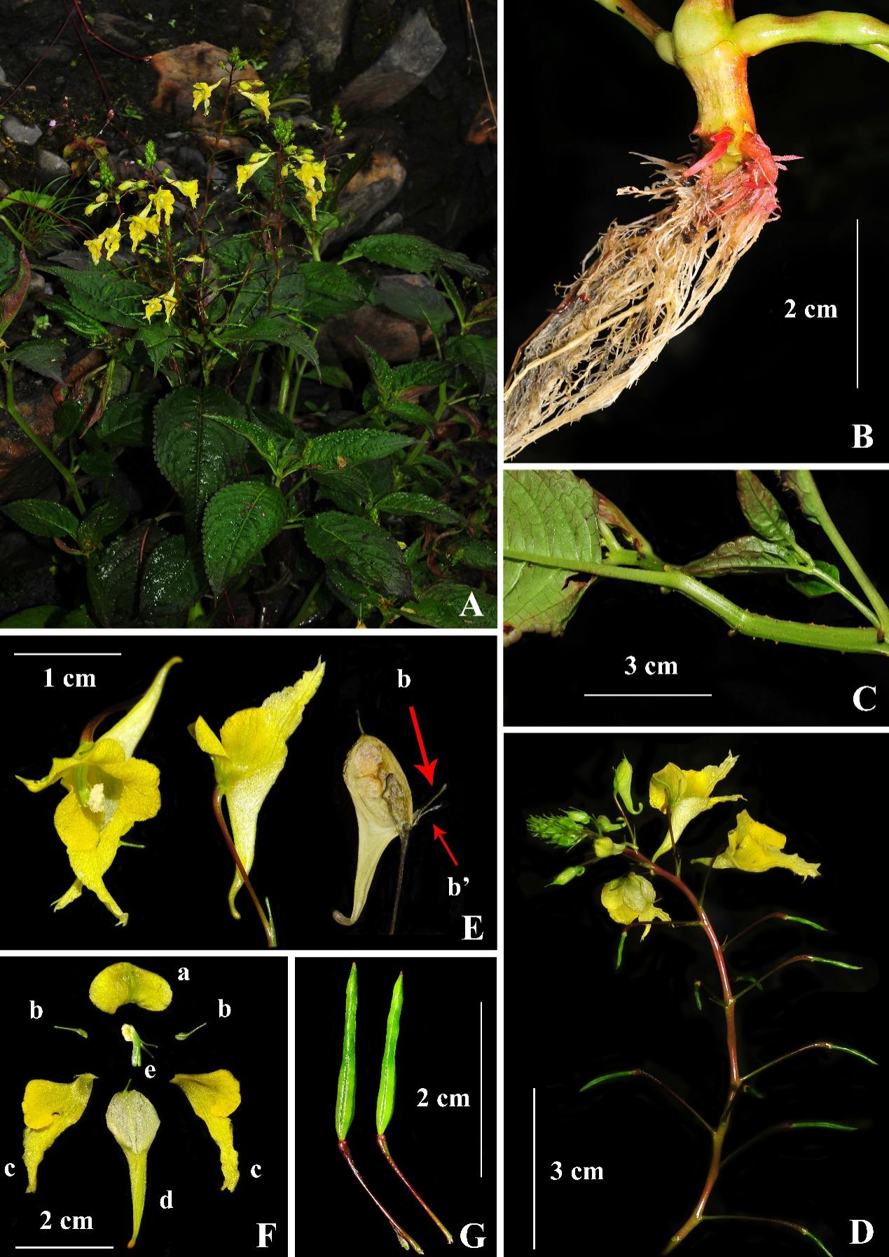 图1. 隆子凤仙花(Impatiens lhunzeensis J.Tian, G.W.Hu & Q.F.Wang)