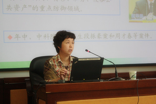 武汉植物园党委副书记、纪委书记龚俊杰对管理支撑人员进行了廉政教育。她传达了中纪委十七届第七次全会和中科院纪检组长会议精神以及白春礼院长关于加强反腐倡廉建设的重要指示,提出了加强科研经费管理与科研道德建设的主要思路。她指出,管理支撑人员要加强政策理论学习、提高认识,职能部门负责人要夯实领导责任、发挥带头作用,普通工作人员要抓好个人自律,特别加强七个方面的思想建设,并以“慎权、慎欲、慎独、慎微,自警、自省、自重、自爱”与大家共勉。