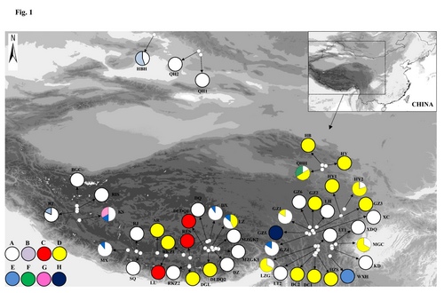 该项工作得到了国家自然科学基金、中国科学院战略性先导专项等项目的资助,研究结果以“Chloroplast DNA phylogeography reveals repeated range expansion in a widespread aquatic herb Hippuris vulgaris in the Qinghai-Tibetan Plateau and adjacent areas”为题发表PLoS One上(doi:10.1371/journal.pone.0060948)。