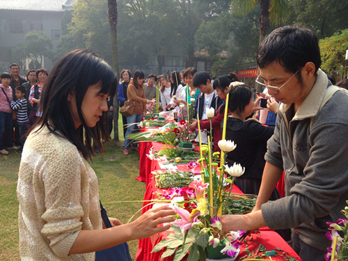 菊花鲜切花是家庭插花常用的素材,被广泛的用于家庭园艺中。如何让菊花装扮自己的家庭?来自中山公园的菊花专家辛高炉为市民开展了菊花插花艺术讲座。26个家庭亲自体验菊花插花艺术,用菊花鲜切花、百合、康乃馨、非洲菊等素材开展菊花插花,欣赏菊花多层面的美。