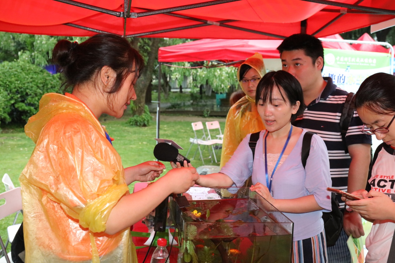 在开幕式现场,来自省国土资源厅等省直机关、中科院武汉分院等科研院所、华中科技大学等在鄂高校和部分科技创新企业的科技成果展、科普知识展均精彩亮相。武汉植物园作为东亚最大的水生植物专类园,结合学科特点及项目优势,通过科普展板,科学小实验和发放宣传资料等形式向公众介绍了水生植物。透过一个个明亮的玻璃窗,揭开了多种沉水植物神秘的面纱,向公众更直观得展示了沉水植物的净化作用,深入的揭示了水生植物为我国富营养化湖泊的治理、水质改善等相关方面的科普知识。“生态缸演示”科学实验秀通过提前仿照自然生态搭建一个生态缸,包含生态系统的生物成分和非生物的物质和能量,缸内有水、沙土、石子、水生植物、小鱼等形成一定的生物链结构,从而构建一个人工微型生态系统。现场向公众展示生态缸。“植物敲染画”小实验邀请公众通过鹅卵石敲击的方式将新鲜叶片或花朵的形状与色彩敲染在棉布上,直观感受“花花世界”背后的大功臣“植物色素”。武汉植物园展出的一系列贴近民生的科普活动既展示了科学魅力又体现了植物园特色,吸引了大批社会公众的观看与参与。