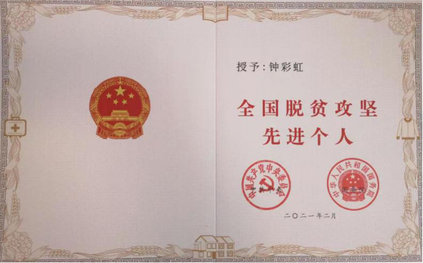钟彩虹获“全国脱贫攻坚先进个人”荣誉称号