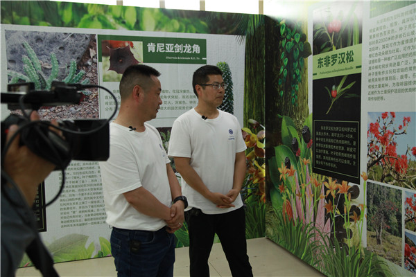 “大咖讲科学”环节,武汉植物园主任、中-非联合研究中心主任王青锋研究员为公众带来《探索神奇非洲植物》的科普讲座。结合自身多次的非洲科考经历和研究经历,将非洲植物和科考讲得生动有趣、直抵人心,同时也向公众展示了一个植物学家的科技担当随后的“中非直播连线”环节,现场直播连线了位于肯尼亚内罗毕的中-非联合研究中心总部。-非联合研究中心非洲方面主任Robert Gituru教授和中方管理人员余海峰介绍了园区概况、功能设置、特色实验室和非洲特色沙旱生植物“专家说展览”环节,-非联合研究中心执行主任严雪研究员和中-非联合研究中心项目组成员胡光万研究员进行线上直播说展。他们结合非洲科考的亲身经历,介绍了无舌千里木等非洲特色植物,讲述了编撰《肯尼亚植物志》等专著的意义。