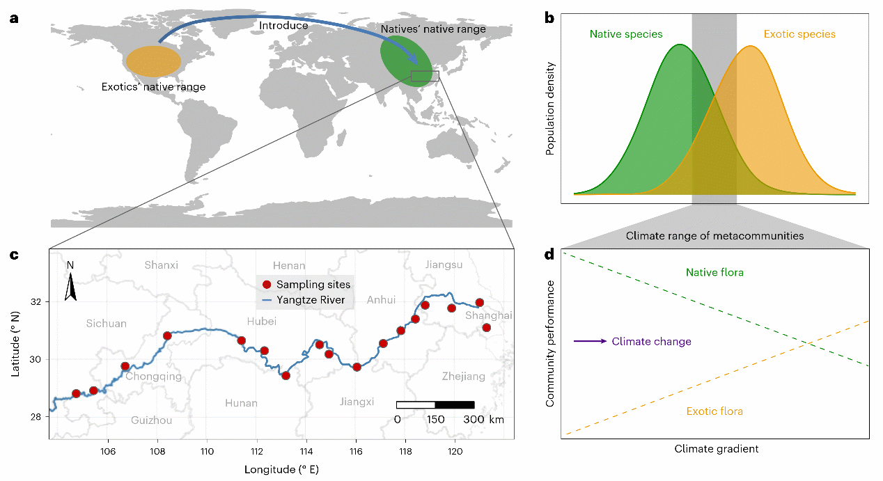 中国科学院武汉植物园黄伟研究员团队的一项最新研究对此问题提供了新的见解。该研究以Deterministic responses of biodiversity to climate change through exotic species invasions”为题在期刊Nature Plants上发表,揭示了气候生态位机制如何同时影响本地群落的脆弱性以及外来物种在全球变暖背景下的入侵性。