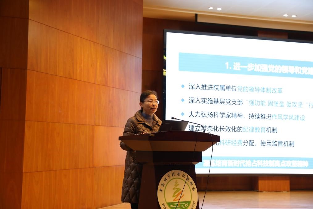 党委书记、副主任尚纳新传达了中国科学院2025年度工作会议精神,并对院工作会议精神进行了深入解读。她号召全体党员全面贯彻落实院工作会议精神,恪守国家战略科技力量使命定位,紧紧围绕抢占科技制高点核心任务,切实增强改革意识和责任担当,坚持干字当头,敢于迎难而上,以行动诠释责任,以团结凝聚力量,以成果彰显担当,奋力打开园改革创新发展新局面。