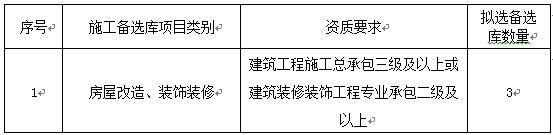 2.1招标范围:拟选入库施工单位数量和修缮项目类别