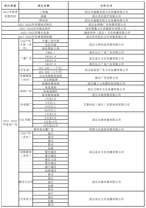 武汉植物园2021年秋季花展花材、宣传广告、科普视频拍摄及科普标识标牌印刷品制作询价结果公告