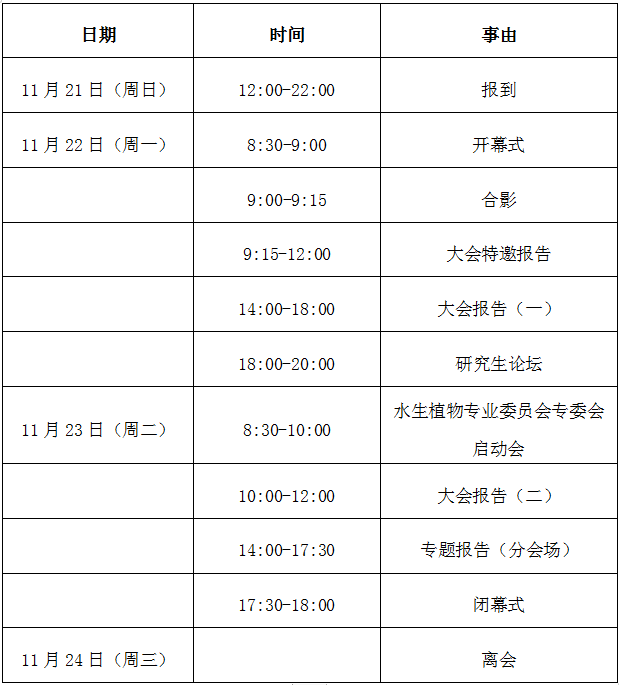 “第三届全国水生植物资源与环境学术研讨会”将于2021年11月21日-24日在湖北武汉召开。本次会议将持续关注水生植物研究和水环境治理的学科前沿和最新技术,邀请国内外权威专家和青年才俊报告。诚挚邀请并热烈欢迎全国各地从事水生植物、水环境和水生态等相关工作的科研机构、大专院校和企事业单位的学者和广大科技工作者参会。现将有关会议安排及参会事宜通知如下: