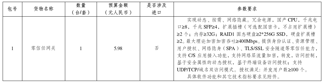 1、中国科学院武汉植物园(招标人)现就购买零信任网关设备以公开询价的方式进行采购。