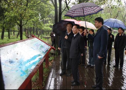 杨松同志一行冒雨视察武汉植物园