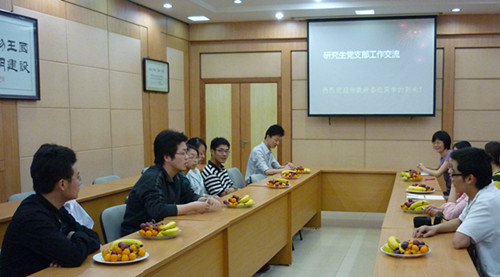 会上,武汉植物园研究生温小斌和武汉物数所研究生柳浩以图文并茂的方式分别介绍了各自支部工作特色和经验、工作中遇到的困难,以及下一步的工作设想。随后,两个支部的同学就如何加强研究生党支部组织建设、制度建设以及如何处理工作中的棘手难题,发表了各自的见解。最后,大家一致认为,党支部要结合自身研究院所的特点,大胆设想,创新活动形式,充分调动研究生党员的热情,发挥党支部的战斗堡垒和党员的先锋模范作用,同时做好宣传工作,扩大党支部的影响力和号召力。