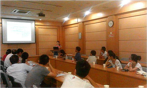 会上,常春藤公司商务管理部张连刚、张杜鹃结合各自工作实际,分别做了题为《景观绿化工程施工》和《中国人民解放军武汉疗养院景观规划方案》的报告,来武汉植物园交流学习的美国哈佛大学在读硕士王海韵也就目前国外景观园林的研究热点问题做了题为《Design with process》的报告。随后,与会人员就感兴趣的问题进行了热烈讨论。园艺中心主任刘宏涛对报告、讨论内容进行了点评。常春藤公司总经理胡振玉做总结发言,他认为一名职业的园林艺术工作者必须具备三个素质:一是深入实际,二是要有浪漫气质,三是要有创新精神,他鼓励年轻人多学习,多交流,不能急功近利。