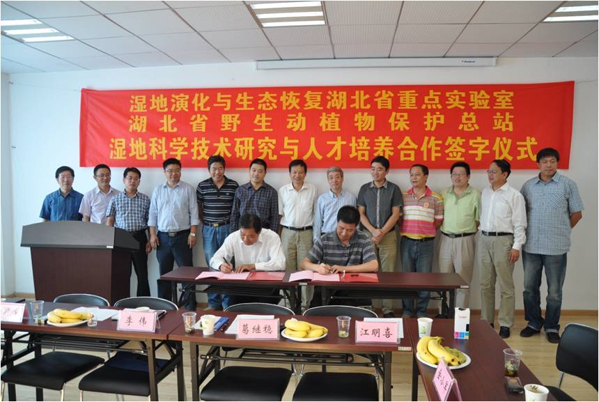 9月14日下午,湿地演化与生态恢复湖北省重点实验室(以下简称“重点实验室”)和湖北省野生动植物保护总站(以下简称“野保总站”)关于湿地科学技术研究与人才培养合作的签字仪式在武汉举行。重点实验室第一副主任葛继稳教授主持签字仪式。