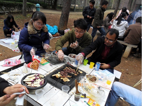 拓展训练、空中滑索、烧烤等项目,同学们都玩得不亦乐乎。不少同学忙碌着摆弄照相机,捕捉一个个值得纪念的镜头。