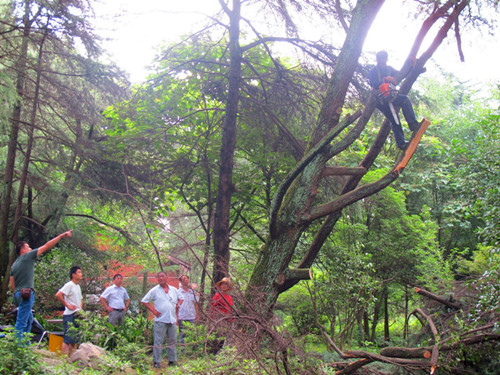 为防患于未然,园地管理部全面统计了园区偏冠树木,对具有明显倾倒隐患的树木,集中进行树型修整,一方面可以清除大树的枯枝死枝,另一方面预防其坠落伤及游人。预计此次整形行动将会持续到7月中旬完成。
