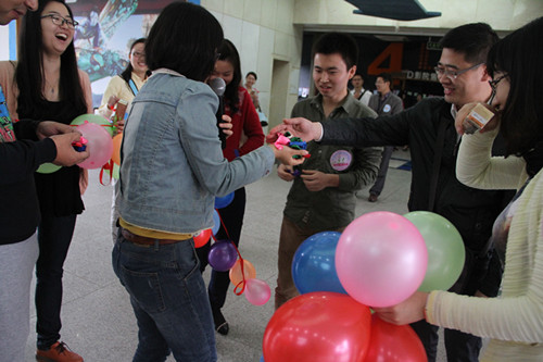 空中弥漫的百合花香、动人心弦的情歌、热情洋溢的青年男女、轻轻伴奏的细微小雨,联谊活动在浪漫愉快的氛围中展开。活动伊始,三分钟自我介绍让略显羞涩的青年男女互相有了初步的了解。在“百合花开”“击鼓传花”“快速吹气球”三个集体游戏环节,青年职工们热情地投入到游戏中,勇敢地敞开心扉邀请搭档,显示出年轻人的激情与活力。“百合花百合花,风吹雨打都不怕,请问要开几朵花?”在百合花开环节,男女生混合站在一起排成圆圈,主持人喊出开出几朵花,几个人就要迅速抱成一团,不符合人数的小团体就要被淘汰掉。在这个锻炼快速反应能力和协作能力的环节,青年职工们打破羞涩,大胆拥抱,抱团取胜。“击鼓传花”是个传统的游戏项目,紧张的信物传送、不幸“中奖者”的各种搞笑表情让现场气氛活跃,高潮迭起。传递信物被主持人喊停时,花落谁手谁就要演唱一首带有“花”字的歌曲,《丁香花》《桃花朵朵开》《菊花台》……一首首脍炙人口的歌曲让参加活动的青年职工展现出精彩的才艺,在深情悠长的情歌中,温暖甜蜜的氛围也在空气中蔓延,需要表演才艺的男生也开始勇敢地邀请女伴对唱。男女合作“快速吹气球”环节,5对有好感的男女青年配合默契,男生吹气球,女生栓气球,每组互相进行速度比拼,快乐爆棚。