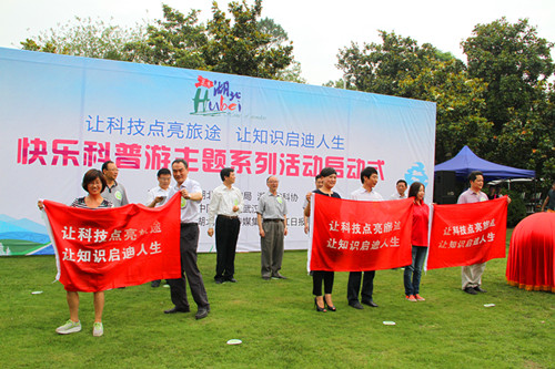 钱远坤在启动仪式上指出,湖北是科教大省,也是旅游大省,科普旅游资源十分丰富。科普与旅游联姻,一方面可以使科普推广坐上旅游快车,以更加生动活泼、寓教于乐的形式走进广大公众;另一方面也可以使我省旅游事业插上科学的翅膀,使旅游内容更加丰富,旅游品质获得提升,推进旅游产业转型升级,充分发挥旅游公益事业性的功能,引领全社会营造讲科学、爱科学、学科学、用科学的浓厚氛围,促进公民科学素质和文化素质提高。殷鸿福也在会上发出倡议,他希望公众积极投身科普志愿服务中,做科学之风的倡导者和传播者,共创科普旅游的美好未来。启动仪式上,徐菊明等领导为湖北省景区科普旅游志愿者代表、旅行社科普旅游志愿者代表、大学生科普旅游志愿者代表授旗。