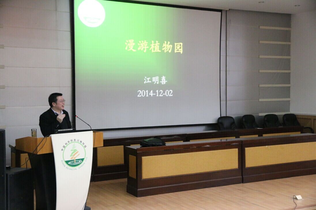 12月2日下午,武汉植物园“磨山优秀青年沙龙”在行政楼3号会议室举行“漫游植物园”主题交流会,植被生态学研究组首席研究员江明喜应邀主讲。园党委书记、副主任罗志强,副主任丁建清等出席讲座,磨山优青会员及在读研究生等60余人参加了交流会。交流会由会长辛海平副研究员主持。