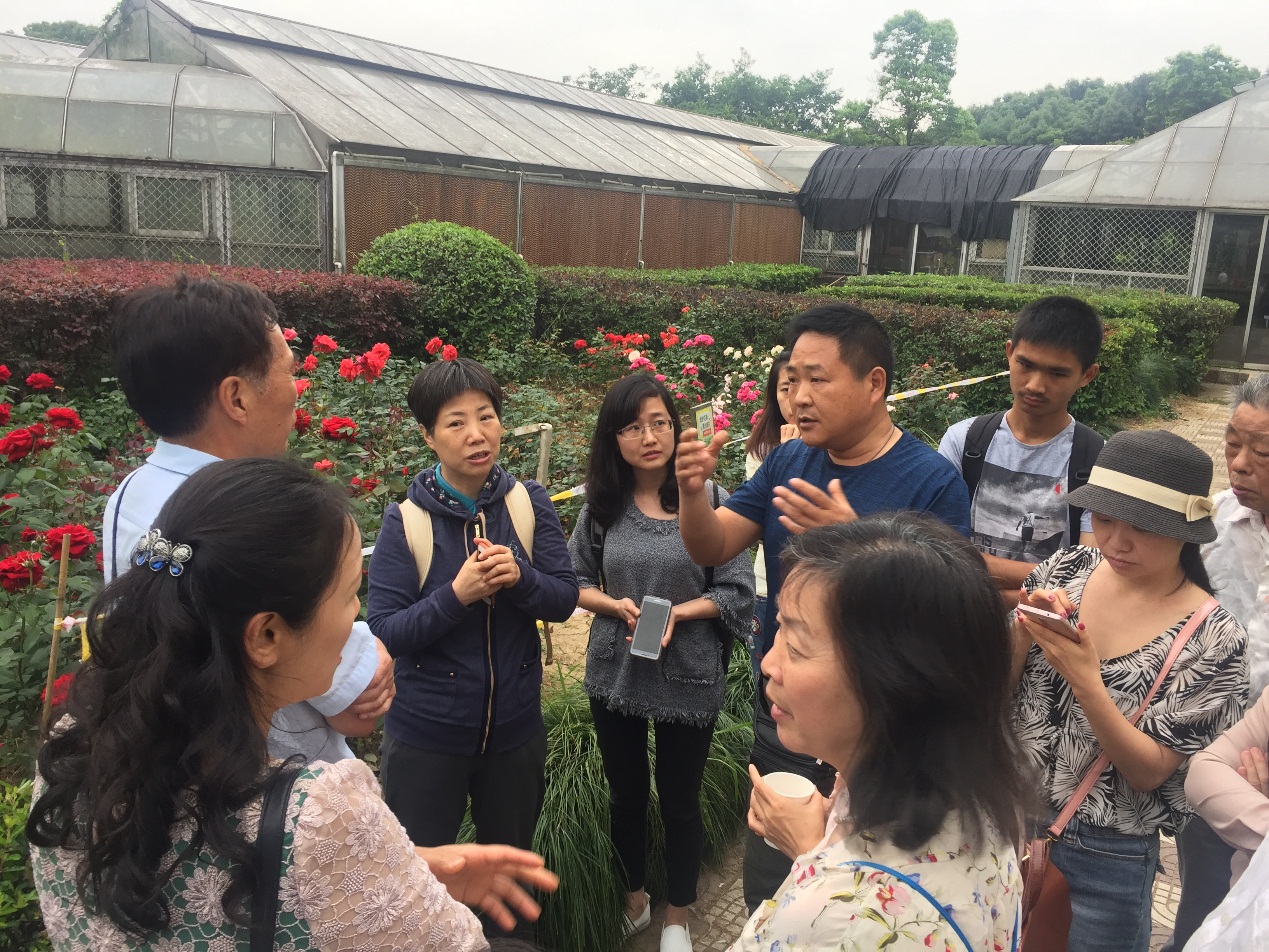 王畅为科普讲解志愿者讲授月季知识