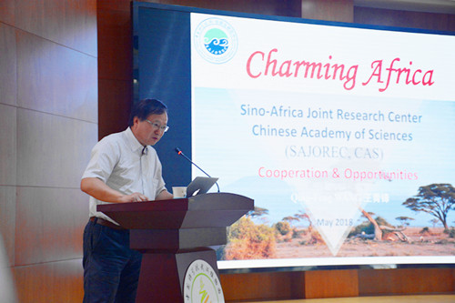 武汉植物园副主任、中国科学院中-非联合研究中心主任王青锋研究员为国际学生做了《Charming Africa》的报告,讲述了自己从1996年踏入非洲以来的经历,分享了自己的非洲梦,介绍了中-非中心的建立、发展及未来规划。