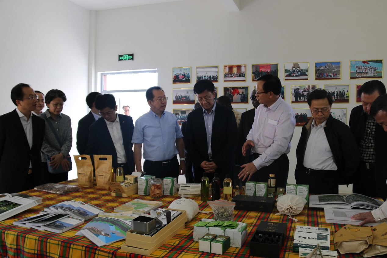 中-非中心主任王青锋(右二)向曹建明(左三)介绍中-非中心对非科研合作成果