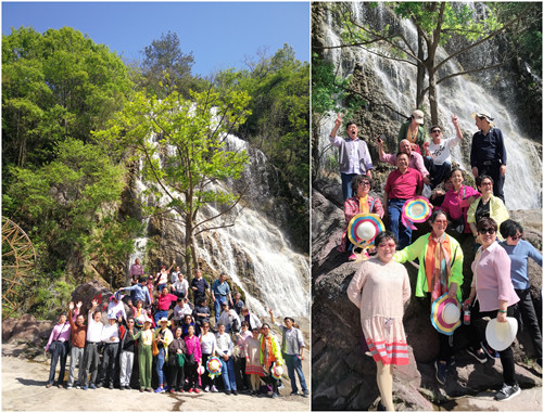 京山美人谷属国家4A级绿林山风景区,位于湖北省京山市的万福河峡谷,由一系列的深潭、飞瀑、奇石、幽洞组成,被誉为"湖北新九寨"。锦珠帘瀑布,觅芳潭,沐浴潭、美人潭……光听这些名称,就能勾起人们遐思无限,浮想联翩。来到美人谷,大家不顾旅途疲劳,被映入眼帘的一处处美景所吸引,被大自然鬼斧神工所造就了如此美丽的天然景色所折服,纷纷拍照留下珍贵纪念。天蓝蓝,山青青,水潺潺,瀑布飞流如珠帘,水雾弥漫风清新。一步一景,步步成景,大家不禁连连发出感叹,太美了!通过游览,大家陶冶了身心,乐在其中。老友相见,互叙友谊,真是一次美好的春季游玩。