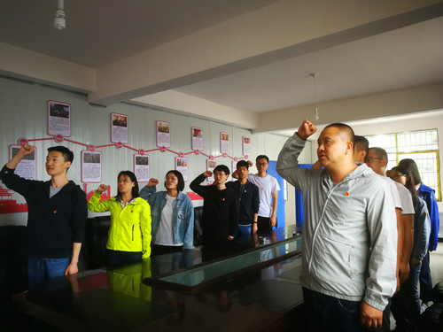 随后,扶贫队来到了俄戛村并走访慰问了该村四户困难群众,了解他们的生活困境,赠送油米等生活物资。在村委会,扶贫队与村主要领导干部进行了座谈,听取该村的村情状况,了解当前的扶贫工作进展和目前工作中所遇到的一些困难,扶贫队员们结合自己的专业,积极为村子的发展献言献策,提出了自己的意见。最后,在药用与能源植物科研党支部支部书记温小斌的带领下,扶贫队与该村部分党员干部重温入党誓词活动。