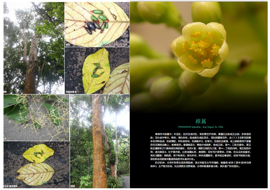 樟科是木本植物的一个大科,是集材用、药用、香料、生态环境和生态文化建设于一身的多用途植物资源,在国民经济建设社会发展中发挥重要作用。该科起源古老、分布广泛、种类众多。同时,樟科也是被子植物分类最为困难的科之一。最早的樟科化石记录可追溯到白垩纪中期, 经过漫长的演化,现在生活在地球上的樟科植物约有45属,2000~2500种。我国有樟科植物25属,445种,大多数分布集中在长江以南各省区,主要分布在云南、四川、广西、广东及台湾等省区,少数落叶种类(如山胡椒属和木姜子属)分布较北,大体来说以秦岭淮河为其北界。
