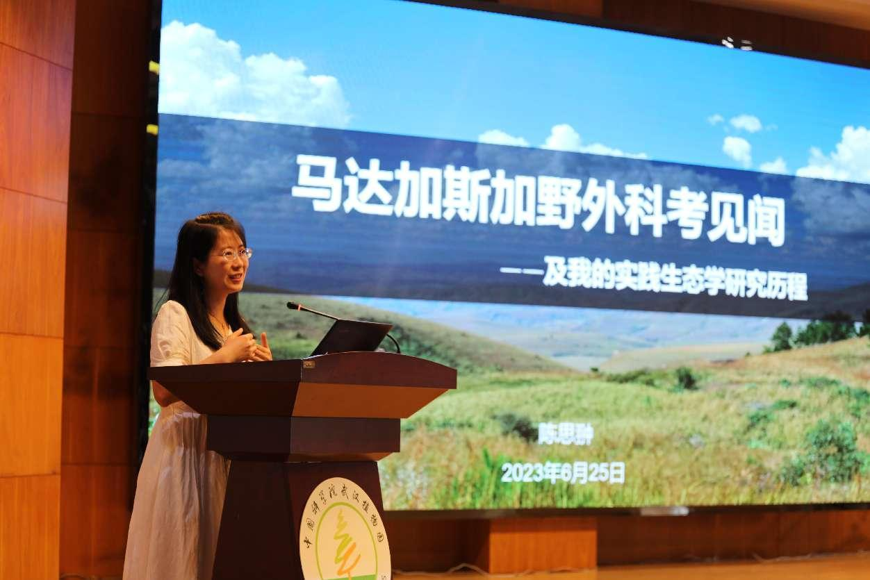 游学在世界多地、具有国际视野的青年科学家陈思翀研究员做“马达加斯加科考见闻”主题报告。她用生动形象的语言,带领大家领略了马达加斯加瑰丽的自然景观和丰富的生物多样性还介绍了在马达加斯加科考期间面临的各种挑战,字里行间的描述以及一张张野外科考图片,带领大家感受马达加斯加科考历程,让大家深刻体会到科考人员的艰辛被科考人员不畏挑战、团结协作、攻坚克难的精神所折服。“理想让人前进不止,坚守让人心无旁骛,学习让人永葆青春”,与会人员深受鼓舞。