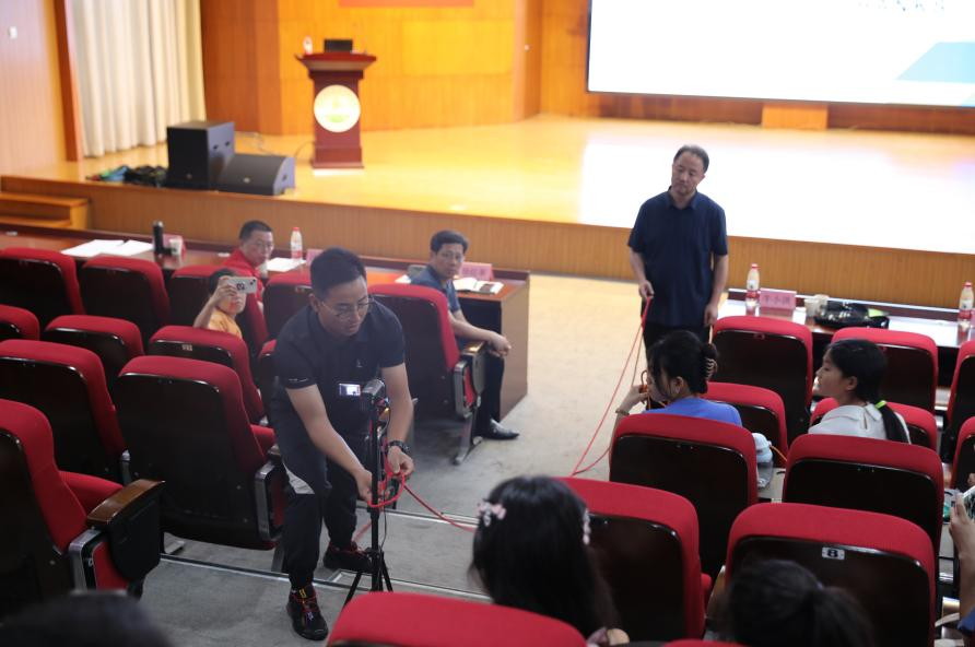 会议最后,高校户外教师向杰现场就户外背包的科学使用方法及野外山路行走时如何使用绳索进行保护做了的讲解与演示。