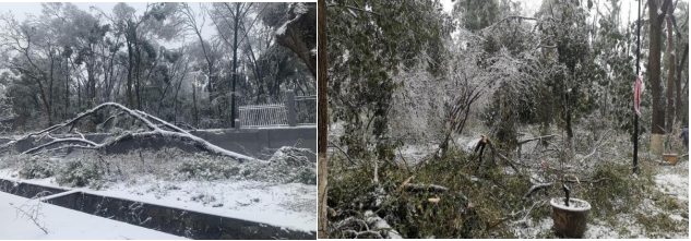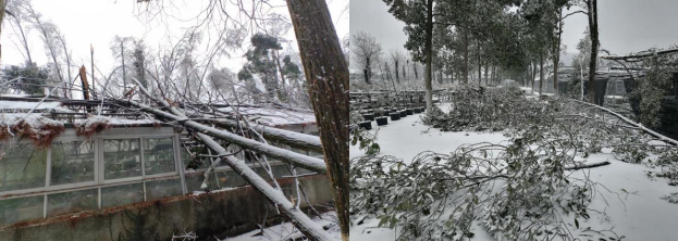 2月2日至4日,武汉迎来极端冻雨恶劣天气,这也是自2009年以来冬季最强雨雪冰冻天气。本轮冻雨对武汉植物园造成了较大影响:园区近90%的树木受到不同程度的破坏,不少大型乔木连根倒伏,几乎所有樟树出现大枝断裂、悬挂,近80%的地被植物受到树枝压迫、持续低温冻伤,多个保育温室受损严重,旅游商亭被压垮,等等。