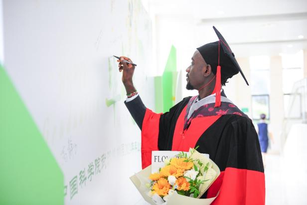 毕业生代表DENIS MBURU NJOROGE在毕业感言中感谢了植物园和导师以及所有对在学术研究中给予过帮助和支持的人。他鼓励毕业生未来保持乐观,不断朝着一个充满无限可能、更光明的未来努力。