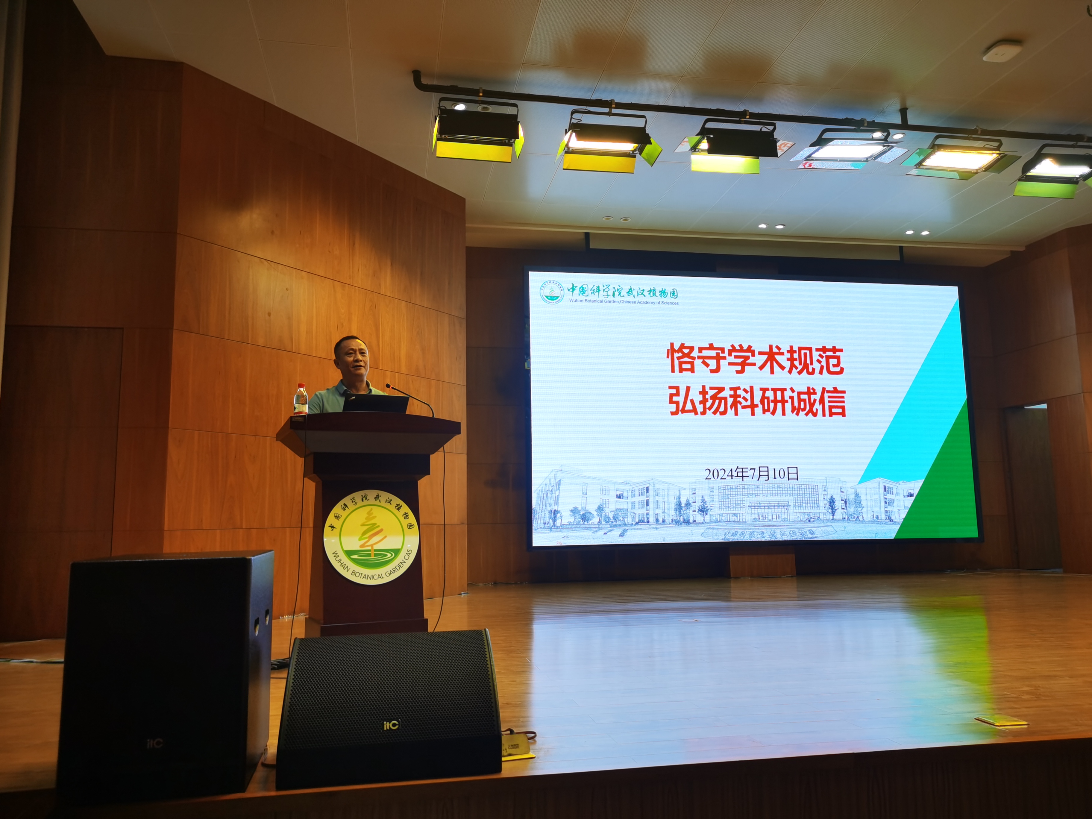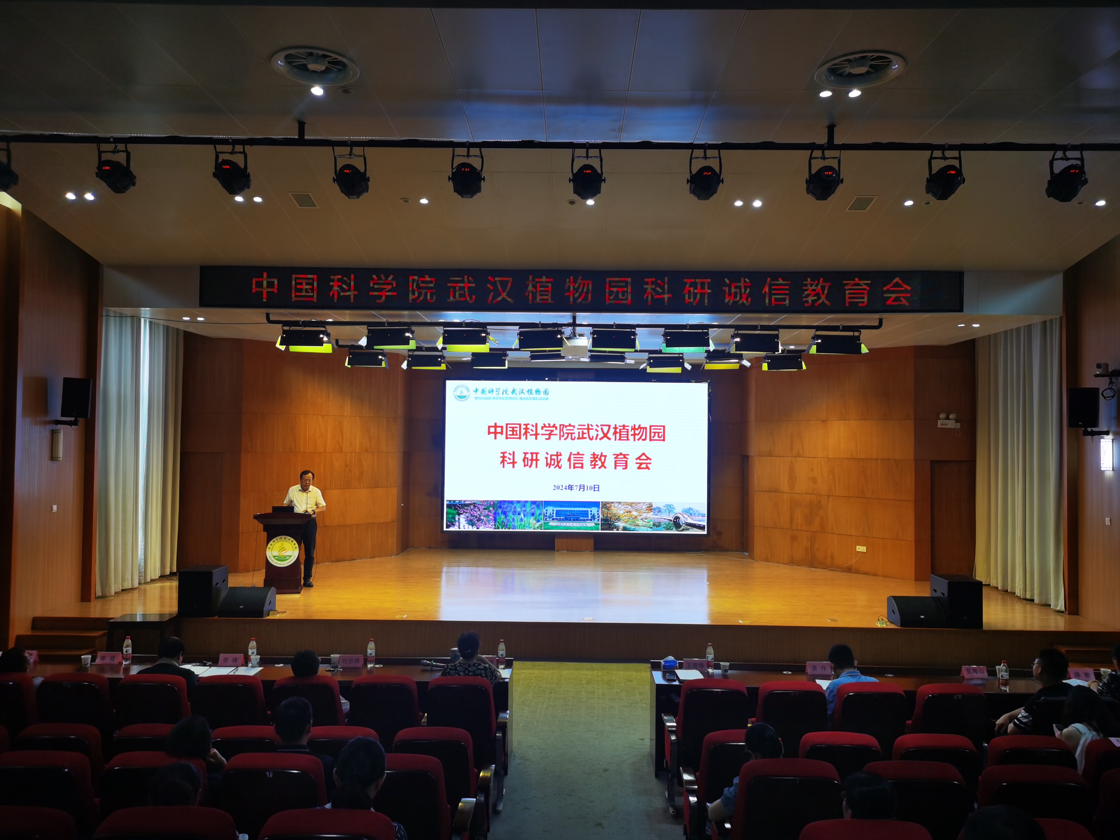 7月10日,武汉植物园召开科研诚信教育会,规范学术道德行为,弘扬良好学风。会议由党委书记、副主任尚纳新主持,园领导、党委委员、纪委委员、支部书记、中层领导人员、科研人员和研究生参会。