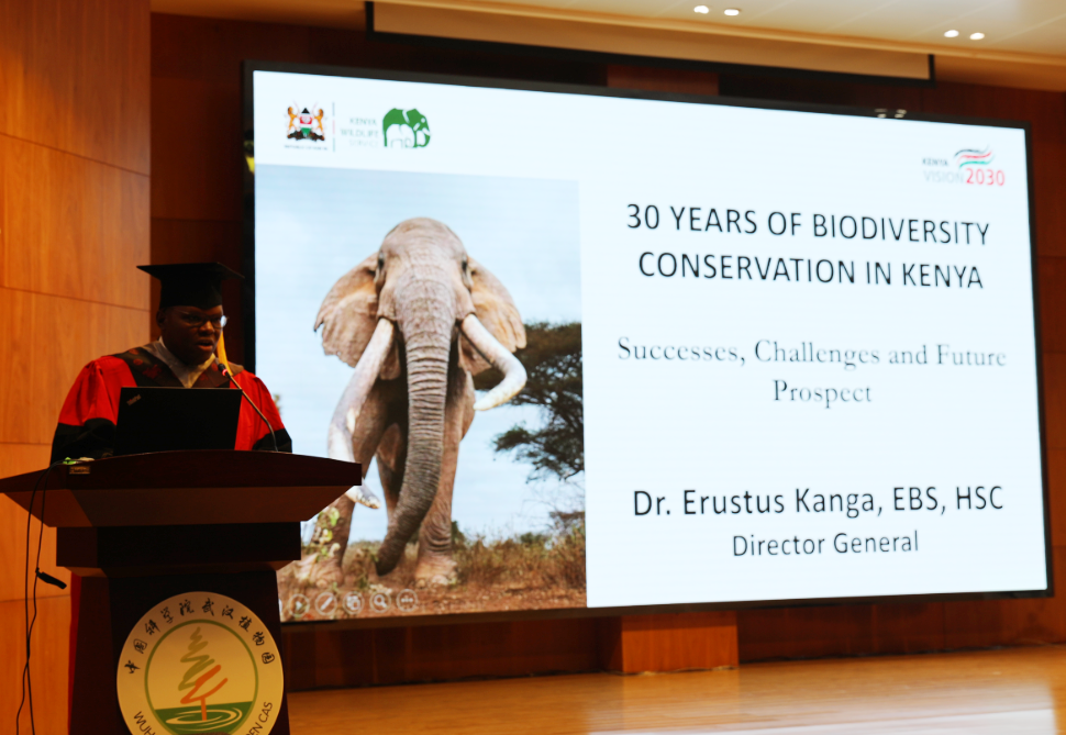 Erustus Mutembei Kanga局长以“肯尼亚生物多样性保护工作30年来的成就、挑战和未来前景”为题,指出过去30年,得益于强有力的反盗猎法律和国际合作,肯尼亚的大象数量从16,000只恢复到约36,280只。然而,该国生物多样性保护工作仍面临气候变化、栖息地丧失等诸多挑战。未来,该国将进一步强化公众意识、资金投入和国际合作,持续推动生物多样性保护,为未来世代保护丰富的野生动植物遗产。