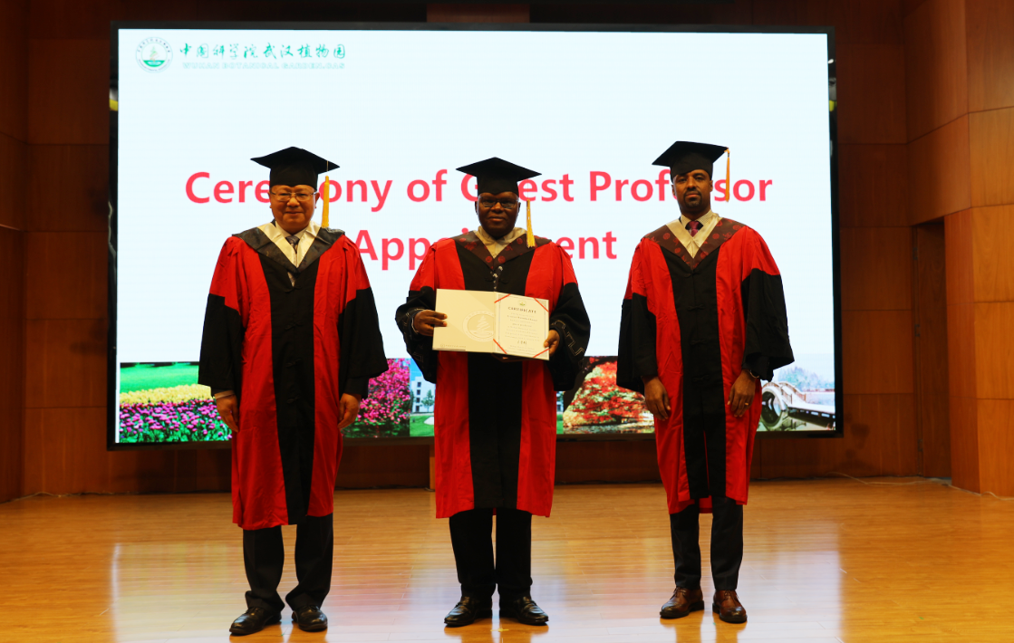 王青锋为Erustus Mutembei Kanga颁发武汉植物园客座研究员聘书