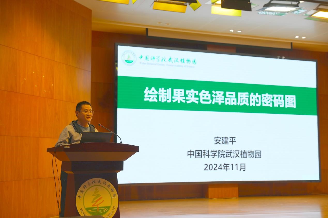 安建平研究员作报告《绘制果实色泽品质的密码图》,围绕果实色泽品质研究工作、个人成长经历、团队建设情况、未来工作规划等方面进行了介绍,并深入分享了中国科学院党校学习体会。