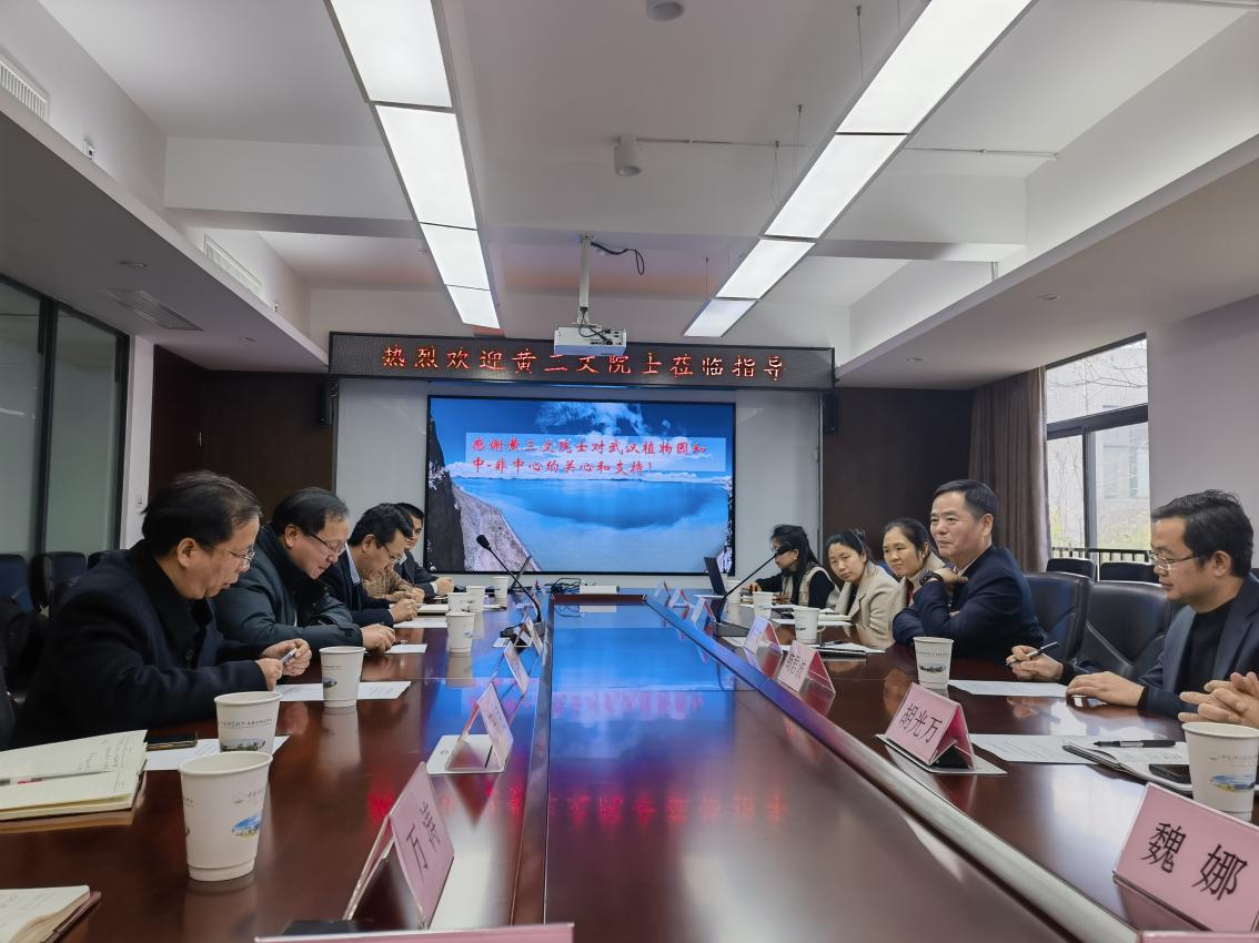 报告结束后,黄三文院士一行与武汉植物园相关人员召开座谈交流会,园主任王青锋、副主任黄伟、相关职能部门负责人及部分学科组组长等参加会谈。王青锋对黄三文院士一行的到访表示热烈欢迎。国际合作与教育处处长严雪介绍了武汉植物园及中国科学院中-非联合研究中心基本情况。在调研交流环节,双方就依托中-非中心在生物多样性保护、对非农业技术示范推广、共同开展植物星球计划研究等方面达成合作共识,双方合作将进一步推动中非科技合作提质升级,助力非洲粮食安全与绿色发展。