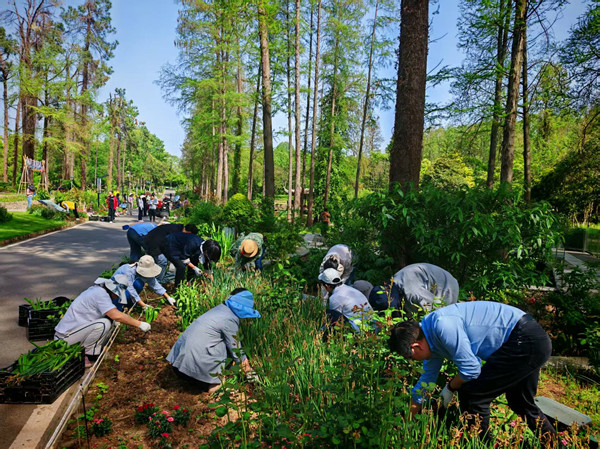 武汉植物园磨山园区的郁金香花展于近日圆满收官。为迅速且高质量地完成撤展工作,全面清理布展场地,为后续“绣球花展”景观布置做好准备。4月14日,科普开放中心党支部携手机关党支部、公司党支部,联合开展了一场特色主题党日活动“清理凋谢球根花卉植株”劳动。来自四个支部的近30名党员参与了本次活动。