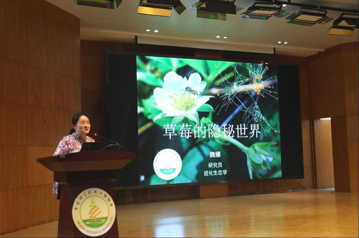魏娜研究员以《草莓的隐秘世界》为题,从历史、基因组、生态、微生物和农药投放五个方面介绍了草莓的隐秘世界,展现了她对所热爱的科研工作的付出和享受,让在座的青年受益匪浅。