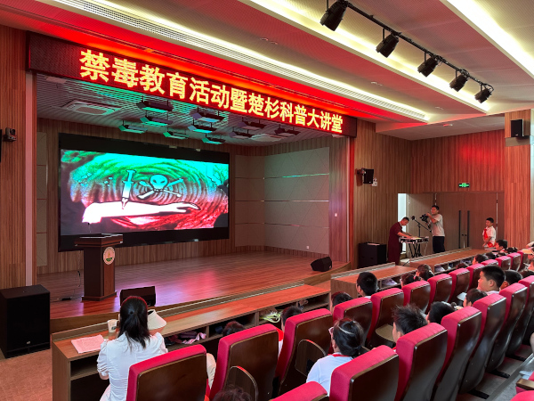 为全方位强化青少年禁毒意识,活动现场开展了丰富多样的禁毒教育活动。“警惕!这个长得像糖果的零食,实际上是毒品‘跳跳糖’!”,在武汉植物园磨山园区学术报告厅,“识毒防毒,青春护航”禁毒科普讲座暨武汉植物园第二十二期楚杉科普讲堂如期开展。湖北省禁毒明星教师以“奶茶”“跳跳糖”等伪装毒品为例强调了新型毒品伪装性强、隐蔽性强的特点,帮助青少年提高对毒品的识别能力。讲座更传授了实用的“防身术”——如何识别陷阱、坚定说“不”、智慧求助,为青春筑起一道坚实的“防火墙”。