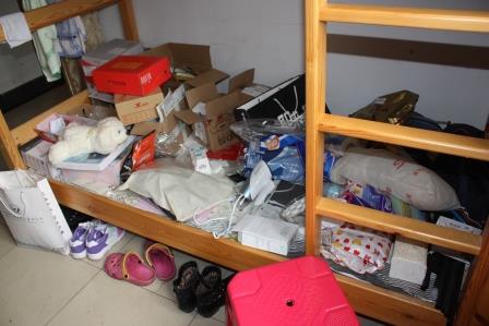 4、研究生某公寓及小区某公寓物品摆放无序,脏乱不堪,门窗紧闭,空气质量较差,请相关公寓的研究生尽快清理整改。