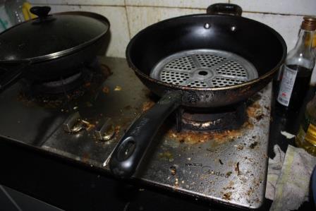 3、抽查的2套研究生公寓的厨房煤气灶周围的瓷砖墙上覆盖了保鲜膜。由于保鲜膜易燃,且煤气灶周围温度较高,容易引发火灾,请相关公寓的研究生尽快处理,撕掉保鲜膜。